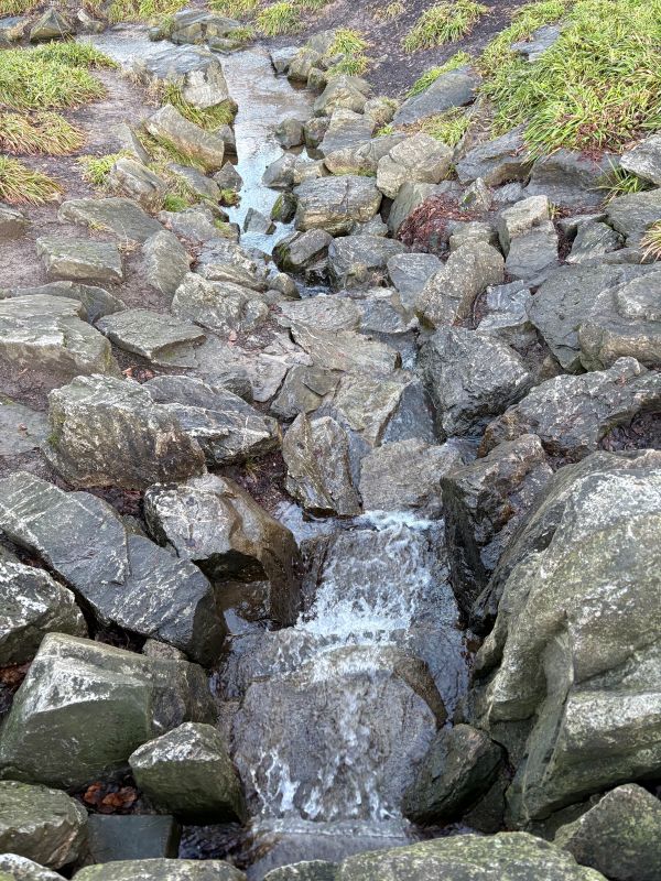 Der Bach hat viel Wasser nach dem Regen.