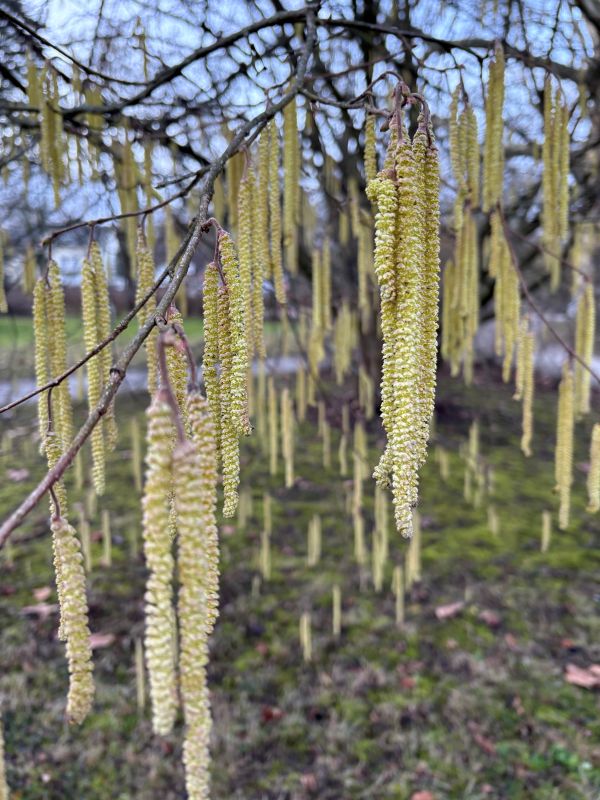 Die Haselnusspolen blühen.