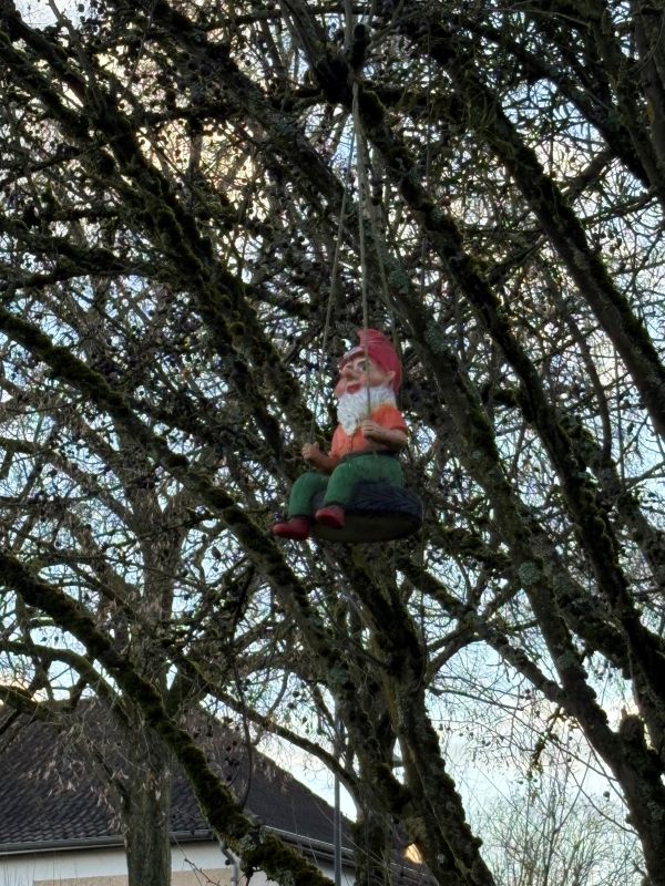 Ein Gartenzwerg hebt ab.